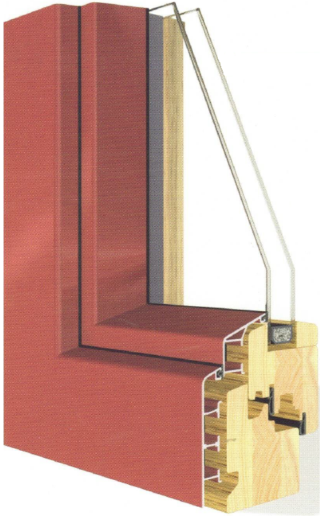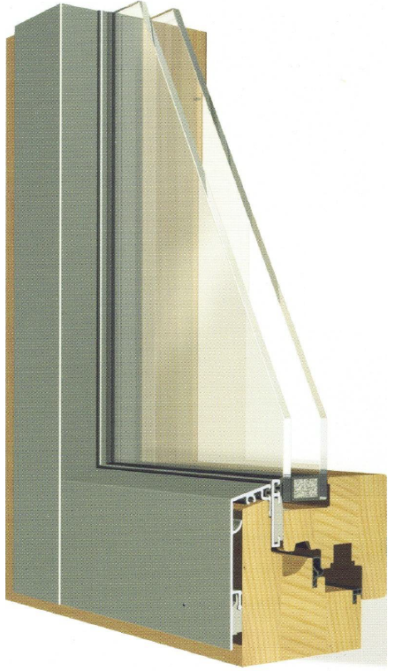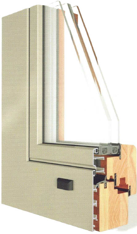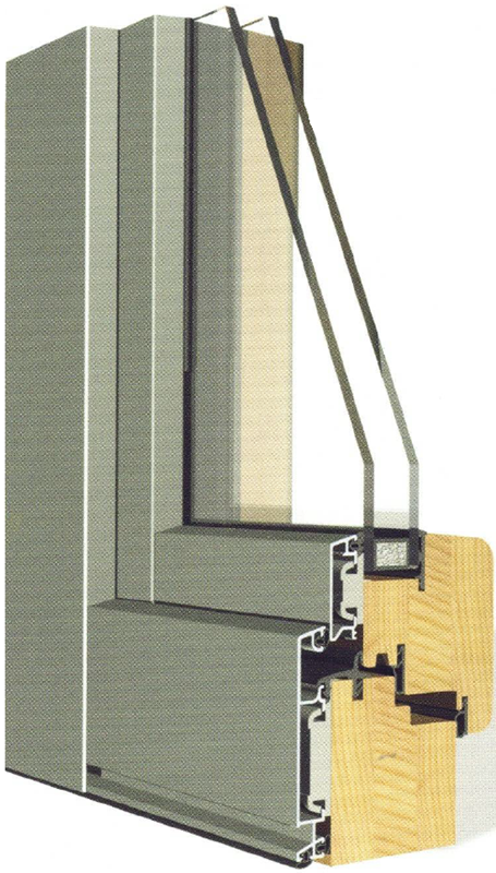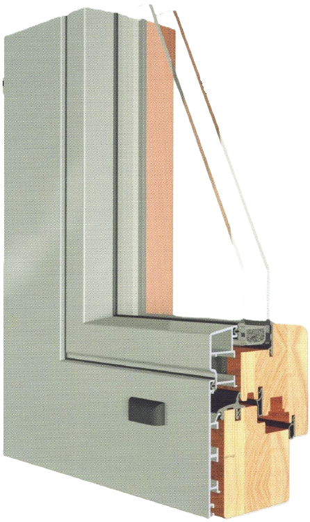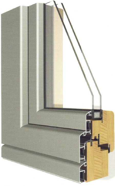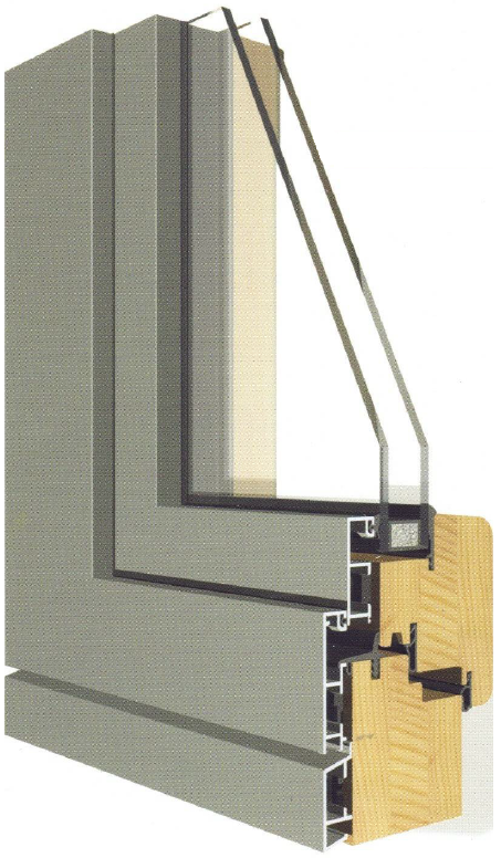 La finestra è realizzata con rovere lamellare accoppiato a un pannello in polistirene estruso ad alto potere termoisolante, rivestito esternamente da un profilo in alluminio resistente e moderno.